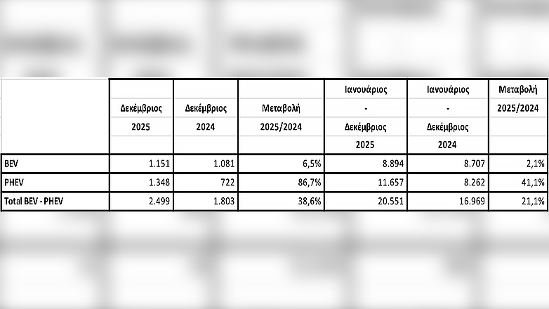 Toν Δεκέμβριο του 2024 ταξινομήθηκαν 722 PHEV και το αντίστοιχο διάστημα του 2025 ταξινομήθηκαν 1348 (αύξηση +86%)