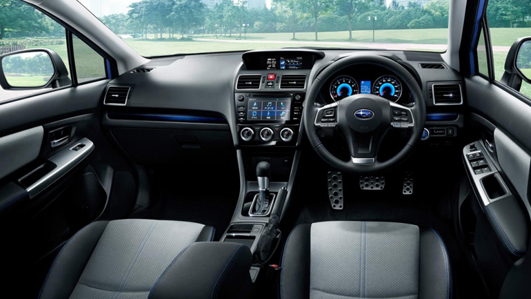 Στο εσωτερικό, ξεχωρίζουν τα μπλε και μαύρα γυαλιστερά διακοσμητικά, ο ανασχεδιασμένος πίνακας οργάνων, η επένδυση Ultrasuede στα καθίσματα και το σύστημα EyeSight.