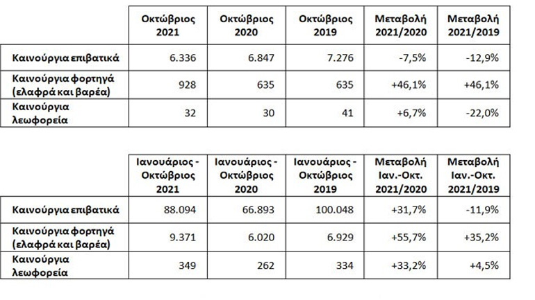 Ο Σύνδεσμος Εισαγωγέων Αντιπροσώπων Αυτοκινήτων ανακοίνωσε τις ταξινομήσεις καινούργιων οχημάτων κατά τον Οκτώβριο 2021.