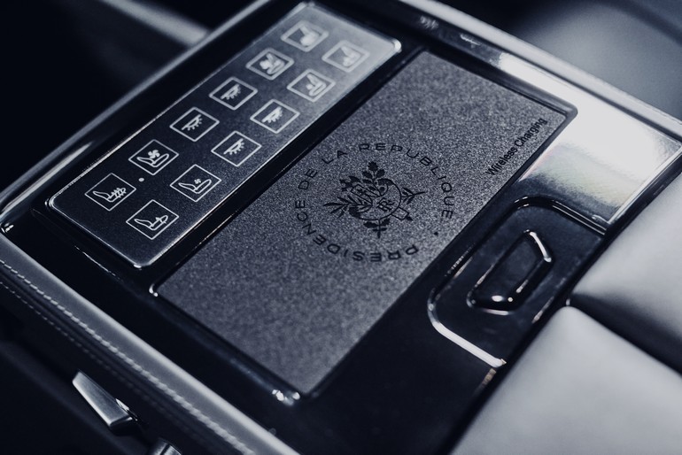 Τη θέση της πίσω σειράς καθισμάτων έχουν πάρει δύο ανεξάρτητα καθίσματα, τα οποία έχουν επενδυθεί με υψηλής ποιότητας δέρμα ενώ στη διάθεση του Γάλλου Προέδρου υπάρχουν θύρες USB, επιφάνειες ασύρματης φόρτισης και υποδοχές για έγγραφα. Με τα νέα δεδομένα σε ότι έχει να κάνει με τις διαστάσεις της καμπίνας, ο χώρος για τα πόδια έχει διαμορφωθεί στα 54,5 εκατοστά.