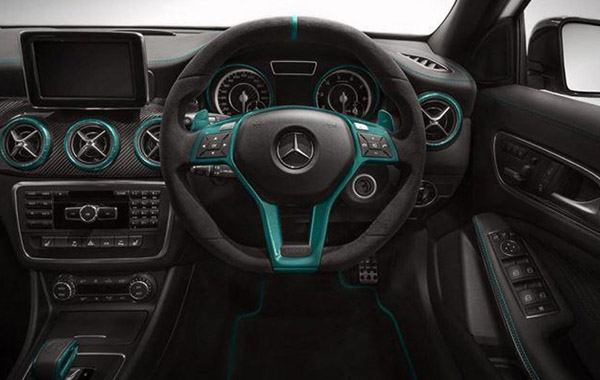 Στο εσωτερικό ακολουθείται το ίδιο μοτίβο, με το τιμόνι, τα καθίσματα, τις πόρτες, τους αεραγωγούς, τα paddles πίσω από το τιμόνι και το μοχλό ταχυτήτων, να διαθέτουν επίσης, πράσινες διακοσμήσεις. Κάτω από το καπό βρίσκεται ο γνωστός δίλιτρος κινητήρας της βασικής A45 AMG, απόδοσης 360 ίππων.