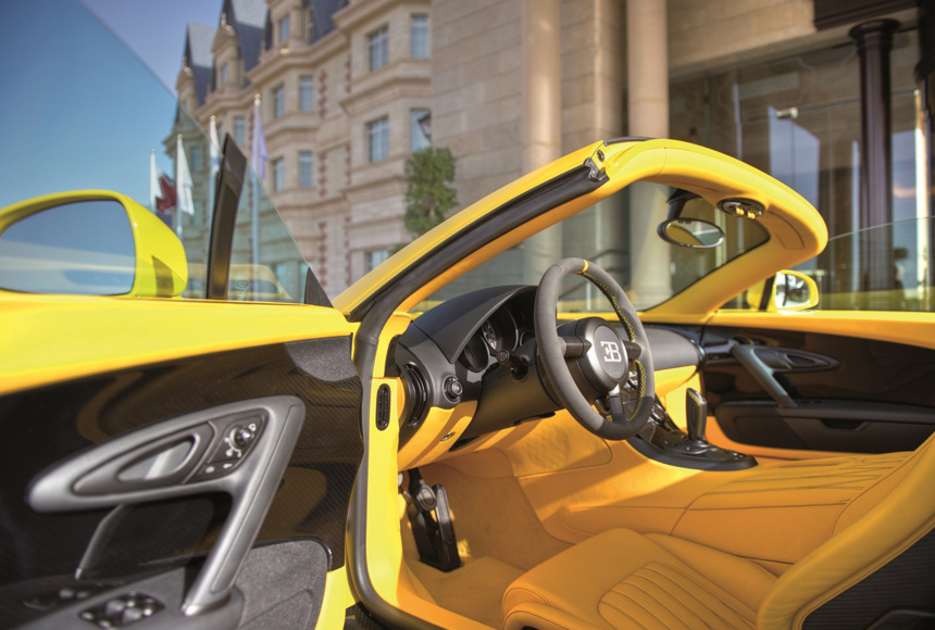 Η συλλεκτική έκδοση Veyron Grand Sport, έχει απόχρωση κίτρινου με το κάτω τμήμα να είναι φτιαγμένο όλο από ανθρακόνηματα.  Στο εσωτερικό κυριαρχούν οι κίτρινες επενδύσεις και οι λεπτομέρειες από ανθρακόνημα, με την τιμή της cabrio Grand Sport να αγγίζει τα 1,6 εκατομμύρια ευρώ.