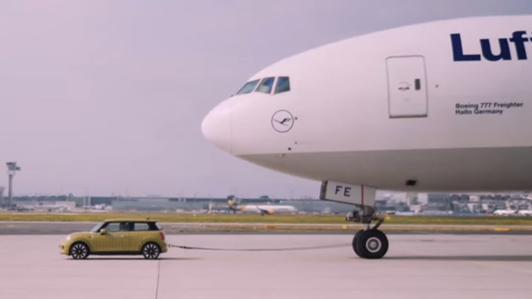 Προκειμένου να αναδείξει τη δύναμη του αυτοκινήτου, η MINI σε συνεργασία με τη Lufthansa πραγματοποίησε μία εντυπωσιακή επίδειξη στο αεροδρόμιο της Φρανκφούρτης, βάζοντας μία πρωτότυπη έκδοση του ηλεκτρικού SE με καμουφλαρισμένο αμάξωμα να ρυμουλκήσει ένα Boeing 777F, βάρους άνω των 150 τόνων.