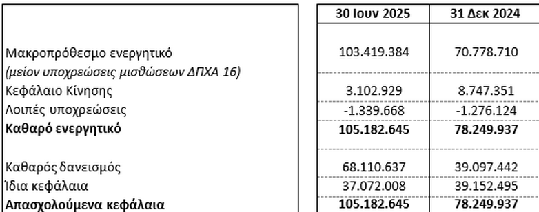 Οι επενδύσεις για την ανάπτυξη του στόλου αυτοκινήτων της Sixt, η ίδρυση της Autodirect και οι αυξημένες ανάγκες σε κεφάλαιο κίνησης των εμπορικών μας δραστηριοτήτων, οδήγησε σε αύξηση του μακροπρόθεσμου ενεργητικού (εξαιρώντας την επίδραση του ΔΠΧΑ 16) σε 103,4 εκ. ευρώ.