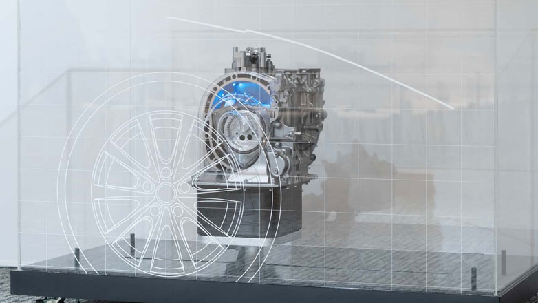 Μαζί με την ανακοίνωση, υπήρχαν και μερικά δείγματα μελλοντικών κινητήρων. Η Mazda έφερε κινητήρες μονού και διπλού ρότορα για εφαρμογές EV. Όπως είδαμε στο MX-30 και στο πρωτότυπο σπορ αυτοκίνητο Iconic SP, ο περιστροφικός κινητήρας χρησιμεύει ως γεννήτρια για την τροφοδοσία της μπαταρίας. Δεν έχει μηχανική σύνδεση με τους τροχούς.