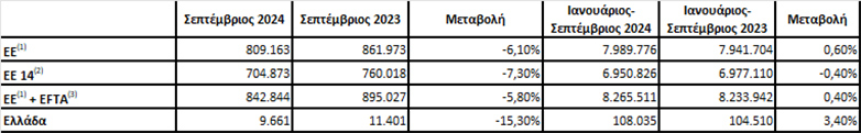 Στην Ευρώπη τα στοιχεία που υπάρχουν είναι για τον μήνα Σεπτέμβριο. Με βάση τα στοιχεία του Ευρωπαϊκού Συνδέσμου Κατασκευαστών Αυτοκινήτων (www.acea.be), η αγορά των επιβατικών κινήθηκε για τον Σεπτέμβριο ως εξής: