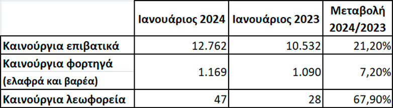 Το μήνα Ιανουάριο (2024) ταξινομήθηκαν 12.762 Ι.Χ έναντι του Ιανουαρίου (2023) όπου είχαν ταξινομηθεί 10.532 Ι.Χ. Και πέρυσι οι ταξινομήσεις ήταν πολύ καλύτερες σε σχέση με αυτές του 2022. Η διαφορά των ταξινομήσεων φέτος με πέρισυ είναι +21.2%, ποσοστό που μπορεί να χαρακτηρισθεί ρεκόρ.