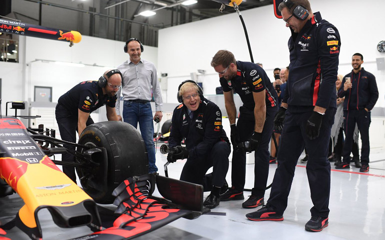 Ο Boris Johnson πρέπει να κάνει αρκετή προπόνηση για να πιάσει δουλειά στη F1, αν σκεφτούμε πως οι μηχανικοί αλλάζουν τέσσερα ελαστικά σε συνθήκες αγώνα σε μόλις 1,82 δευτερόλεπτο.