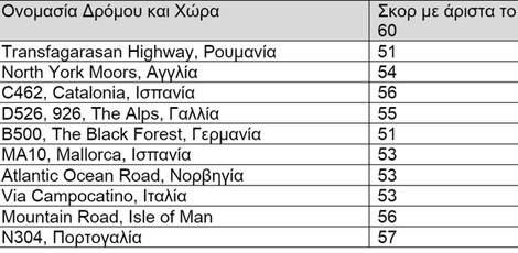 Μάλιστα, η διαδρομή συγκέντρωσε την υψηλότερη βαθμολογία σε έξι διαφορετικές κατηγορίες αξιολόγησης με 57 στα 60. Μεταξύ αυτών είναι η «Οδηγική Συγκίνηση», η «Φιλοξενία», το «Φυσικό Τοπίο» και η «Τοπική Κουζίνα».