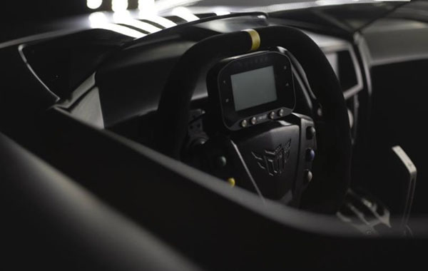 Το εσωτερικό είναι αυστηρά διθέσιο, με τα καθίσματα από ανθρακόνημα να έχουν ζώνες 6 σημείων, το τιμόνι είναι από σουέτ δέρμα και στον πίνακα οργάνων είναι ενσωματωμένο ένα χρονόμετρο.