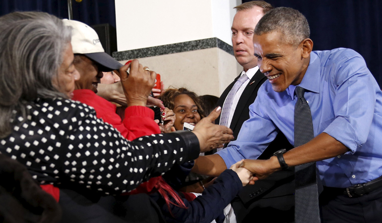 Ευδιάθετος και χαλαρός, περιεργάστηκε τα αυτοκίνητα, όπως το νέο Chrysler Pacifica και το Chevrolet Bolt EV, λέγοντας χαριτολογώντας ότι έκανε μια βόλτα μέχρι το Ντιτρόιτ, προκειμένου να ψάξει για το επόμενο όχημά του. Χαρισματικός ως ηγέτης, ο Obama κέρδισε τους πάντες με την ευγένεια και το χιούμορ του, δίνοντας συγχαρητήρια στις τρεις μεγάλες αυτοκινητοβιομηχανίες για την εντυπωσιακή ανάκαμψη και το ρεκόρ πωλήσεων που έκαναν τη περασμένη χρονιά.