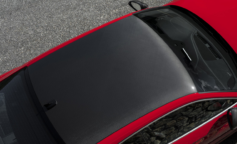 Σπόιλερ, διαχύτης, πτέρυγα, ποδιές στο πλάι, καπάκια καθρεπτών, ακόμη και η οροφή – μόνο στο RS5 – είναι κατασκευασμένα από το εξωτικό υλικό. Το λογότυπο quattro στη μάσκα είναι από τιτάνιο και η γρίλια από ματ αλουμίνιο. Οι ζάντες 20 ιντσών σε απόχρωση Anthracite Matte Black ζυγίζουν 2 κιλά λιγότερα από τις εργοστασιακές, ενώ τα πίσω τζάμια είναι φιμέ.