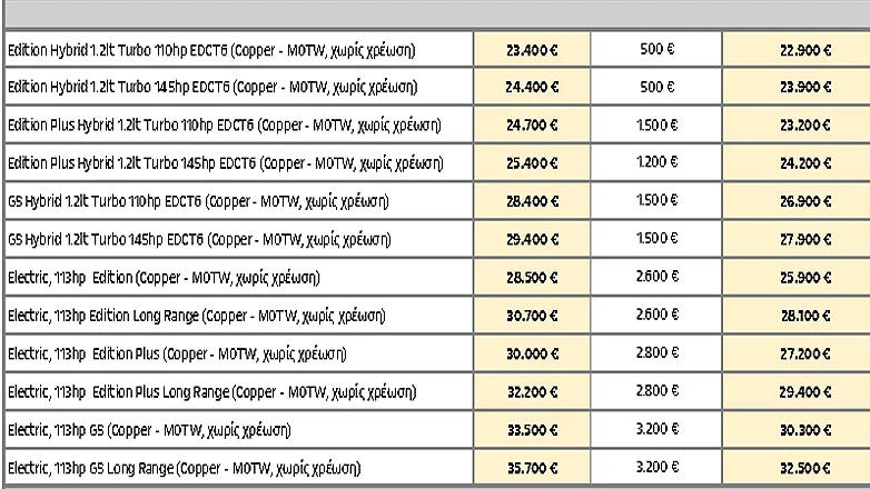 Σημαντικό πλεονέκτημα αποτελεί και η πολυδιάστατη γκάμα τιμών, με τις ηλεκτρικές εκδόσεις να ξεκινούν –μετά την κρατική επιδότηση– από επίπεδα που τις καθιστούν ιδιαίτερα ανταγωνιστικές, ενώ οι υβριδικές εκδόσεις αποτελούν τη «χρυσή τομή» για όσους αναζητούν χαμηλή κατανάλωση και αυτόματο κιβώτιο.
