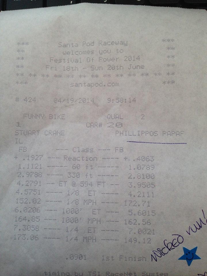 Συγκεκριμένα, ο γνωστός (σε όλη την Ευρώπη) οδηγός αγώνων dragster Φίλιππος Παπαφιλίππου συμμετείχε πριν από λίγες ημέρες σε πανευρωπαϊκούς αγώνες στην πίστα Santa Pod Raceway της Μεγάλης Βρετανίας. Δίνοντας το παρών με μια ειδικά διαμορφωμένη μοτοσικλέτα, κατάφερε να κατακτήσει την πρώτη θέση μεταξύ 13 Funnybike και να πετύχει νέο ευρωπαϊκό ρεκόρ με χρόνο 4,21 δευτερόλεπτα (από 4,29) και 278 χλμ./ώρα στο 200άρι!!!