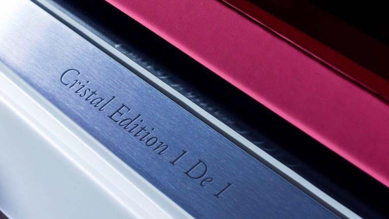 Το ροζ χρώμα κυριαρχεί παντού, από τις ζάντες, έως την καμπίνα και το χώρο του κινητήρα. Στην τάπα του ρεζερβουάρ αναγράφεται το γράμμα «L», στα μαρσπιέ έχει χαραχθεί το όνομα της έκδοσης «Cristal Edition 1 De 1», ενώ στο κεντρικό τούνελ είναι κεντημένες κάποιες κινεζικές λέξεις.