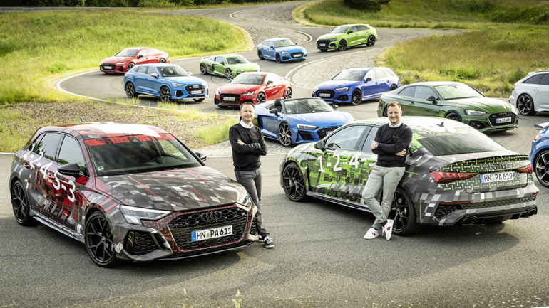 Μεγάλη ώθηση θα δώσουν τα νέα RS3 Sportback και RS3 Sedan, τα οποία θα αποκαλυφθούν επίσημα στις 17 Ιουνίου. Η εταιρεία έδωσε στη δημοσιότητα ορισμένες φωτογραφίες των οχημάτων με καμουφλαρισμένο όμως το αμάξωμα.
