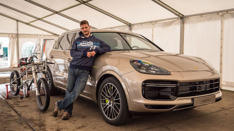 Ο οδηγός του πανίσχυρου SUV επιτάχυνε μέχρι τα 240 χλμ./ώρα στη μεγάλη ευθεία, με τον Βρετανό να ρυμουλκείται από πίσω. Τότε, αποκόλλησε το ποδήλατο και άρχισε να κάνει πεντάλ όσο πιο γρήγορα και δυνατά μπορούσε, «κολλώντας» πίσω από την Cayenne προκειμένου να πάρει το slipstream και να μειώσει τις αντιστάσεις του αέρα.