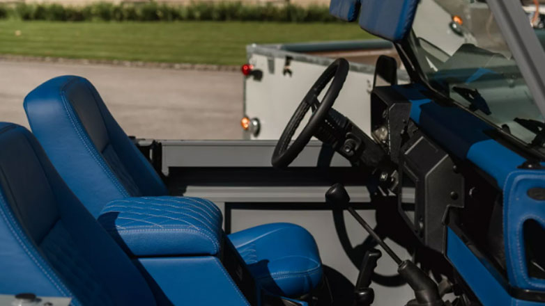 Το εσωτερικό είναι καλυμμένο με δέρμα Muirhead Egyptian Blue, παραμένοντας αρκετά λιτό, έχοντας όμως και μεταφερόμενο ηχοσύστημα για μη προγραμματισμένα πάρτι στην παραλία.