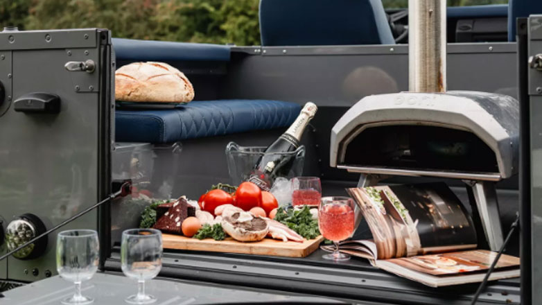 Οι φωτογραφίες δείχνουν μια εγκατάσταση για πικνίκ στο πίσω μέρος, που διαθέτει ακόμη και έναν φορητό φούρνο πίτσας ανάμεσα στους πίσω πάγκους. Η ύπαρξη φούρνου ταιριάζει σίγουρα στον χαρακτήρα της κατασκευής, επιτρέποντας στον Lando να απολαύσει ένα ζεστό κομμάτι πίτσα στην ερημιά ή στην παραλία.