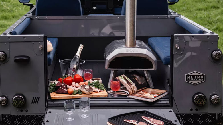 Οι φωτογραφίες δείχνουν μια εγκατάσταση για πικνίκ στο πίσω μέρος, που διαθέτει ακόμη και έναν φορητό φούρνο πίτσας ανάμεσα στους πίσω πάγκους. Η ύπαρξη φούρνου ταιριάζει σίγουρα στον χαρακτήρα της κατασκευής, επιτρέποντας στον Lando να απολαύσει ένα ζεστό κομμάτι πίτσα στην ερημιά ή στην παραλία.