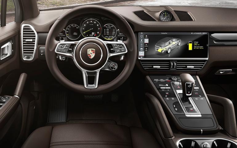 Πρόκειται για την Cayenne E-Hybrid, ένα όχημα ελευθέρου χρόνου υψηλών επιδόσεων, που συνδυάζει τον V6 3.0 biturbo βενζινοκινητήρα με ένα ηλεκτρικό μοτέρ, αποδίδοντας συνδυαστικά 462 ίππους και 700 Nm ροπής από τις 1.000 σ.α.λ. Για την ενέργεια του ηλεκτροκινητήρα φροντίζει μία μπαταρία χωρητικότητας 14.1 kWh, η οποία φορτίζει μέσω απλού φορτιστή σε περίπου 8 ώρες και μέσω φορτιστή 7.2 kW σε 2 ώρες και 20 λεπτά.