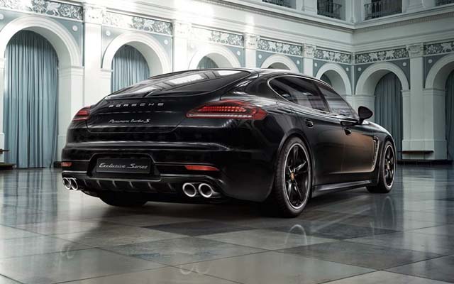 Πρόκειται για την Panamera Exclusive Series, μια συλλεκτική έκδοση που θα παραχθεί σε μόλις 100 μονάδες και απευθύνεται σε συγκεκριμένους πελάτες της μάρκας. Το αμάξωμα είναι βαμμένο σε μαύρο και καφέ, φέρει σκούρα κρύσταλλα τεχνολογίας LED, ζάντες αλουμινίου 20 ιντσών, διαχύτη και τέσσερις απολήξεις της εξάτμισης.