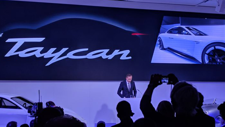 Το αυτοκίνητο βρίσκεται στο τελικό στάδιο της εξέλιξης και θα παρουσιαστεί το 2019. Ονομάζεται Taycan και ουσιαστικά πρόκειται για την έκδοση παραγωγής του εντυπωσιακού πρωτότυπου Mission E. Ανήκει στην κατηγορία των sport sedan και υιοθετεί πολλά στοιχεία από το concept, όπως τόνισε ο επικεφαλής ανάπτυξης, Stefan Weckbach.