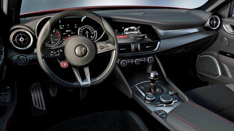 Δυστυχώς, οι πληροφορίες αφορούν μόνο την κορυφαία έκδοση QV και όχι τις απλές, οι οποίες σαφώς και θα είναι πιο εμπορικές. Η νέα Giulia QV είναι διαθέσιμη σε πέντε χρώματα (Competizione Red, Trofeo White, Vulcano Black, Vesuvio Grey, Montecarlo Blue), περιλαμβάνοντας στο εσωτερικό δερμάτινες επενδύσεις και alcantara, bucket καθίσματα με carbon επένδυση, τριάκτινο τιμόνι με κουμπί start/stop, ψηφιακή οθόνη 8,8 ιντσών και ηλεκτρικό χειρόφρενο.