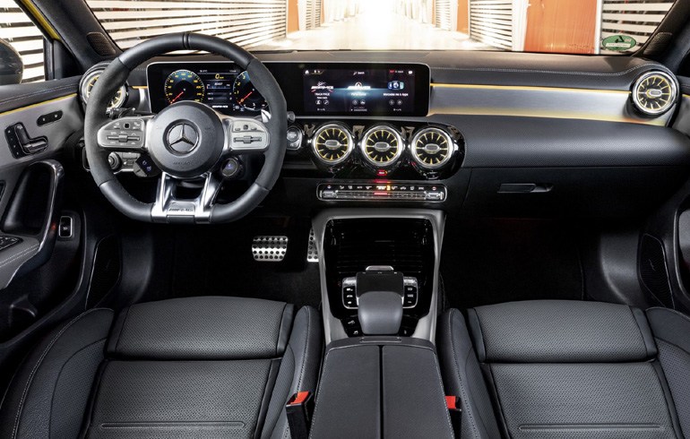 Ο οδηγός κάθεται στo μπάκετ κάθισμα της AMG Performance, έχοντας μπροστά του ένα flat-bottom τιμόνι και τις δύο τεράστιες οθόνες του συστήματος πολυμέσων MBUX. Μπορεί να επιλέξει μεταξύ πέντε προφίλ (Slippery, Comfort, Sport, Sport+ και Individual), προσαρμόζοντας την απόκριση του γκαζιού, την ακρίβεια του τιμονιού, τον ήχο του κινητήρα και τις ρυθμιζόμενες αναρτήσεις AMG Ride Control, ανάλογα με το οδόστρωμα και τις συνθήκες.