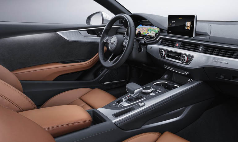 Το καινούργιο A5 προσφέρεται αρχικά με τρεις κινητήρες βενζίνης και έναν diesel, περιλαμβάνοντας ιδιαίτερα πλούσιο εξοπλισμό. Στη βάση της γκάμας βρίσκεται ο 1.4 TFSI απόδοσης 150 ίππων, ο οποίος συνδυάζεται αποκλειστικά με αυτόματο κιβώτιο επτά σχέσεων S tronic, εκπέμποντας μόλις 125 γρ./χλμ.