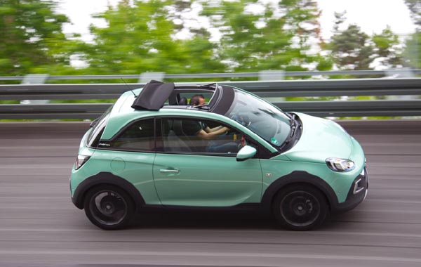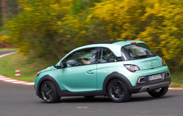 Το Adam Rocks, ξεχωρίζει από το συμβατικό μοντέλο, χάρη στα πλαστικά προστατευτικά περιμετρικά του αμαξώματος, την αυξημένη απόσταση από το έδαφος και την στάνταρ συρόμενη υφασμάτινη οροφή Swing Top. Στους κινητήρες, το μεγαλύτερο ενδιαφέρον παρουσιάζει ο τρικύλινδρος 1.0 ECOTEC, απόδοσης 90 και 115 ίππων.