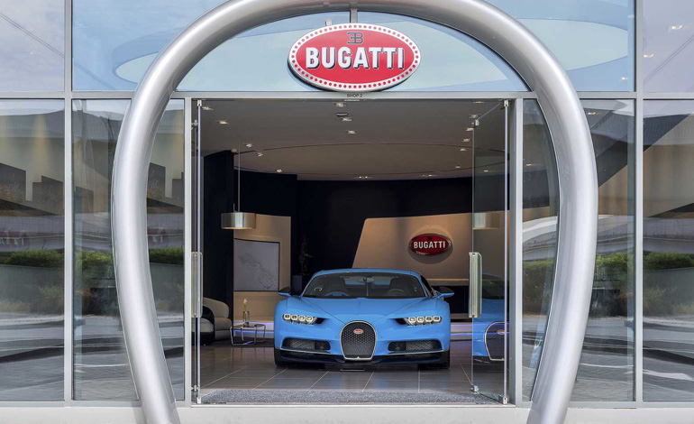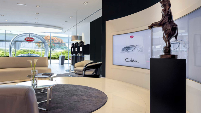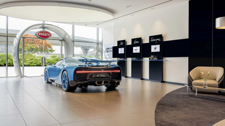 Καλύπτει έκταση 240 τετραγωνικών μέτρων και στο εσωτερικό υπάρχει μόλις μία Chiron. Ο χώρος είναι εναρμονισμένος πλήρως με την αισθητική των υπόλοιπων εκθέσεων της μάρκας ανά τον κόσμο, προσφέροντας στους πελάτες και επισκέπτες μια μοναδική εμπειρία. Όλα μέσα στην αίθουσα ακολουθούν το μοτίβο του hypercar, κάθε επιφάνεια είναι βαμμένη στα ίδια χρώματα, περιλαμβάνοντας διάφορα γλυπτά και έργα τέχνης.