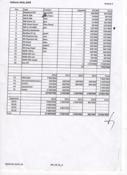 Ο Ali Bongo, λίγους μήνες αφότου πήρε την εξουσία στα χέρια του, αγόρασε σύμφωνα με γαλλικά Μέσα, από την ελβετική εταιρεία SDP Service und Logistik, 29 πολυτελή αυτοκίνητα αξίας σχεδόν 15 εκατομμυρίων ευρώ. Όπως αναφέρεται, τα παρέλαβε όλα μαζί, σε μία μόλις ημέρα, τον Ιανουάριο του 2010.