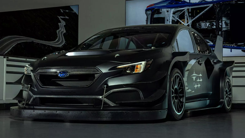 Ολόκληρο το αμάξωμα είναι από ανθρακονήματα και ζυγίζει 1.120 κιλά, δηλαδή 453 κιλά λιγότερα από ένα τυπικό WRX. Κατάμαυρο, πατάει σε 18άρες ζάντες OZ Racing Superturismo LMP και εφοδιάζεται με slick ελαστικά Yokohama ADVAN.