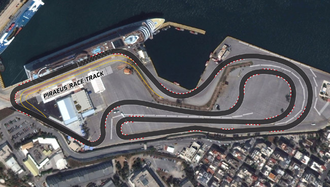 «Αυτή είναι η πίστα που προτείνουμε στο σημείο του λιμανιού που δένουν τα μεγάλα κρουαζιερόπλοια. Κατά τους χειμερινούς μήνες που δεν έχουν αρχίσει οι κρουαζιέρες και με βάση το ετήσιο πρόγραμμα του λιμανιού, μπορεί τους μήνες Μάρτιο ή Απρίλιο, καθώς και τους μήνες Οκτώβριο ή Νοέμβριο, να βρεθούν δύο ημερομηνίες που το συγκεκριμένο σημείο να λειτουργήσει ως πίστα αγώνων για το Πανελλήνιο Πρωτάθλημα Ταχύτητας Αυτοκινήτων. Για αγώνες μοτοσικλέτας δεν προσφέρεται καθώς δεν υπάρχουν χώροι διαφυγής. Χρειάζεται, διαγράμμιση, προσωρινή τοποθέτηση κέρμπς και τοιχία ασφαλείας. Οι στεγασμένοι χώροι της πίστας μπορεί να είναι εκθεσιακές τέντες μεγάλου μεγέθους.