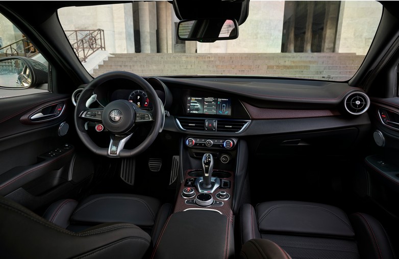 Για τη διαφοροποίησή της, η σειρά Super Sport κοσμείται από πράσινο τετράφυλλο τριφύλλι σε μαύρο αντί για λευκό φόντο, έχοντας επιπλέον καπάκια καθρεφτών με φινίρισμα ανθρακονήματος, σκούρες ζάντες -19” για την Giulia και 21” για τη Stelvio- καθώς και μαύρες δαγκάνες φρένων. Το κερασάκι είναι βέβαια οι στάνταρ εξατμίσεις της Akrapovič που φροντίζουν όχι μόνο για την αισθητική αλλά και την ακουστική διαφοροποίηση της συγκεκριμένης έκδοσης.
