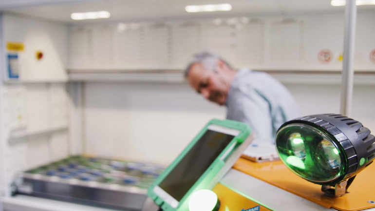 Το ρομπότ είναι εξοπλισμένο με ένα ράφι που διαθέτει 17 θυρίδες για τη συγκράτηση υλικών διαφορετικών διαστάσεων και βάρους. Για την αποφυγή σφαλμάτων, το σύστημα ανοίγματος/κλεισίματος των θυρίδων λειτουργεί αυτόματα – κάτι που σημαίνει ότι οι χειριστές σε κάθε σταθμό εργασίας έχουν πρόσβαση μόνο στα υλικά που προορίζονται για αυτούς.