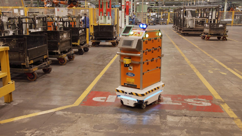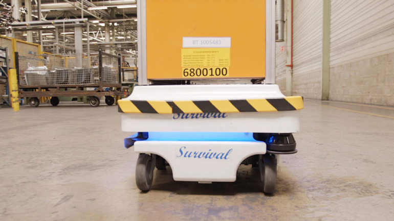 Το ρομπότ είναι πλήρως αυτόνομο και γνωρίζει άριστα τη χωροταξική διάταξη του εργοστασίου. Δουλειά του είναι να παραδίδει εξαρτήματα και υλικά απευθείας στον κατάλληλο σταθμό εργασίας.