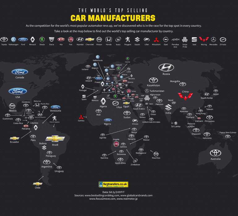 Ωστόσο, η Toyota ήταν μακράν η κορυφαία μάρκα με 9.224.000 πωλήσεις παγκοσμίως, αφήνοντας στη δεύτερη θέση την VW και μάλιστα με μεγάλη διαφορά (5.987.800 αυτοκίνητα). Σύμφωνα με έρευνα της βρετανικής εταιρείας Regtransfers, η ιαπωνική φίρμα κυριαρχεί σε 49 από τις 193 καταγεγραμμένες χώρες.