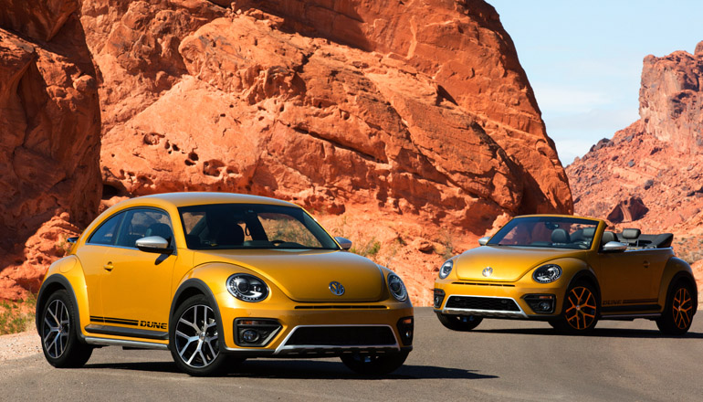 Το Beetle Dune έχει εμπνευστεί από το Baja Bugs, έχοντας off road χαρακτηριστικά, αυξημένη απόσταση από το έδαφος κατά 10 χλστ., αλουμινένια προστατευτικά στους προφυλακτήρες, μαύρα πλαστικά προστατευτικά στους θόλους των τροχών και διακοσμητικές λωρίδες στο πλάι.