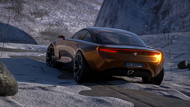 Όπως βλέπετε και στις εικόνες, το GT μοντέλο «φωνάζει» από μακριά Alfa Romeo με την τριγωνική γρίλια αλλά και τα λεπτά – επιθετικά φωτιστικά σώματα που μας έχει συνηθίσει η φίρμα. Οι ζάντες φέρνουν μνήμες από παλαιότερα μοντέλα, την ώρα που τα άκρως μοντέρνα πίσω φωτιστικά σώματα δημιουργούν εξωτική εικόνα. Και επειδή φυσικά μιλάμε για ένα GT μοντέλο, δεν θα μπορούσαν να λείπουν οι μεγάλοι αεραγωγοί αλλά και η τριγωνική απόληξη της εξάτμισης.