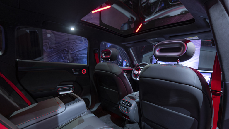 Στο εσωτερικό, τα υψηλής ποιότητας καθίσματα από μικροΐνες προσφέρουν κορυφαία άνεση και έναν ιδιαίτερα κομψό διάκοσμο. Τα εμπρός καθίσματα με λειτουργίες αερισμού και θέρμανσης, μαζί με τα θερμαινόμενα πίσω καθίσματα, εξασφαλίζουν την απόλυτη άνεση ενώ το τιμόνι Alcantara με φωτιζόμενο λογότυπο Brabus, είναι το κερασάκι στην τούρτα. Παράλληλα, την premium ατμόσφαιρα ολοκληρώνουν η πανοραμική οροφή τύπου halo και η επένδυση οροφής από μικροΐνες. Τα σπορ πεντάλ, τα λογότυπα BRABUS στο εσωτερικό και ο φωτισμός AmbientLight+ με 256 επιλογές χρωμάτων προσθέτουν επιπλέον πινελιές και υπογραμμίζουν τον ξεχωριστό χαρακτήρα του οχήματος.