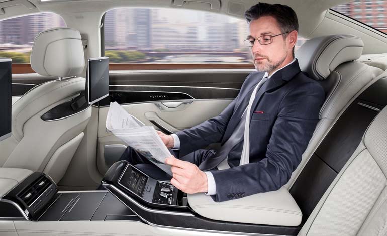 Αυτοκίνητα όπως το A8, απευθύνονται κυρίως σε πάμπλουτους επιχειρηματίες, οι οποίοι διαθέτουν προσωπικό οδηγό. Προκειμένου να αναδείξει τις αρετές και την άψογη ποιότητα κύλισης του μοντέλου, η γερμανική εταιρεία ζήτησε από τον διευθυντή μιας εταιρείας VIP σοφέρ να δοκιμάζει τη νέα limo.