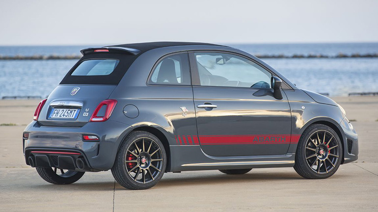 Κόκκινες δαγκάνες φρένων, κόκκινες λεπτομέρειες στους εμπρός πίσω προφυλακτήρες, κόκκινα πλευρικά αυτοκόλλητα Abarth