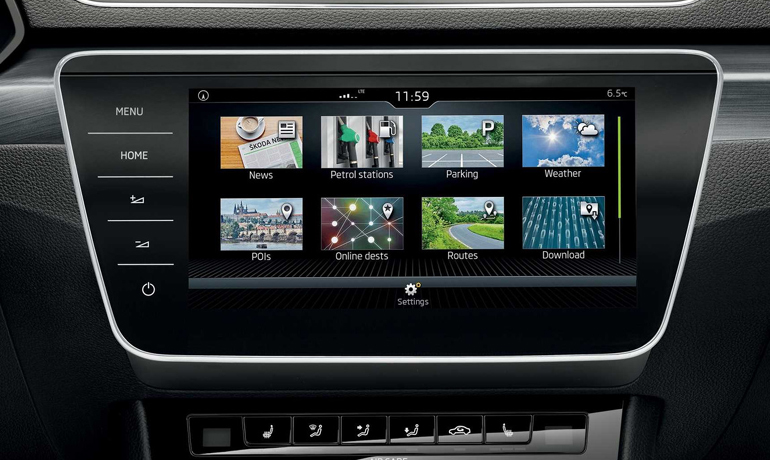 Η Skoda τοποθέτησε στο Superb μεγαλύτερες οθόνες 8 και 9,2 ιντσών για το σύστημα πολυμέσων, ανάλογα την έκδοση. Επίσης, πρόσθεσε το σύστημα SmartLink+ για καλύτερη σύνδεση του smartphone του χρήστη με το αυτοκίνητο, καθώς και το Care Connect το οποίο ειδοποιεί τις αρμόδιες αρχές σε περίπτωση τροχαίου ατυχήματος.