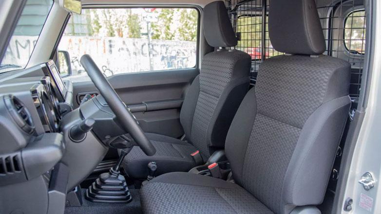 Στο εσωτερικό, η καμπίνα είναι σχετικά απλή, με τη μόνη μοναδική πινελιά να είναι μια αριθμημένη πλακέτα στο ταμπλό για τη σήμανση κάθε μονάδας. Βασισμένο στην κορυφαία εξοπλιστική έκδοση, το Jimny Mata είναι εξοπλισμένο με σύστημα infotainment 7 ιντσών, ηχοσύστημα Pioneer, κάμερα οπισθοπορείας, θερμαινόμενα καθίσματα και μια πλειάδα βασικών χαρακτηριστικών ADAS. Ο χώρος αποσκευών είναι επενδεδυμένος με ένα ελαστικό χαλάκι, μια πρακτική προσθήκη που βοηθά να διατηρούνται τα πράγματα τακτοποιημένα και εύκολα καθαρά.