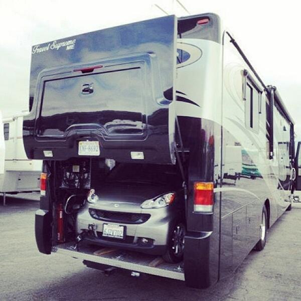 Motorhome με Smart μέσα σε αυτό για τις μετακινήσεις…