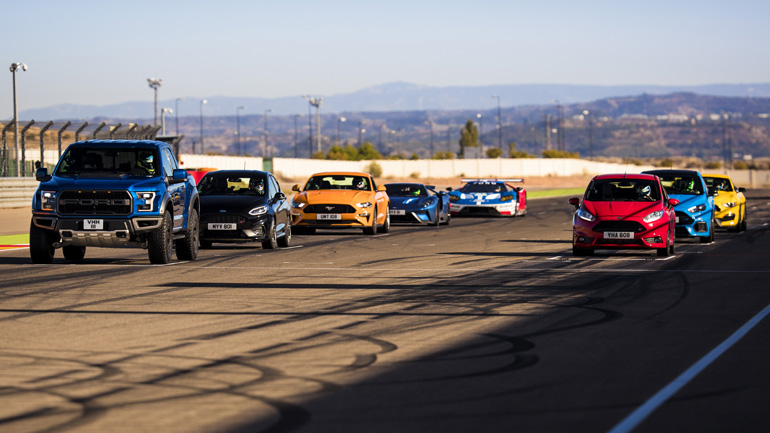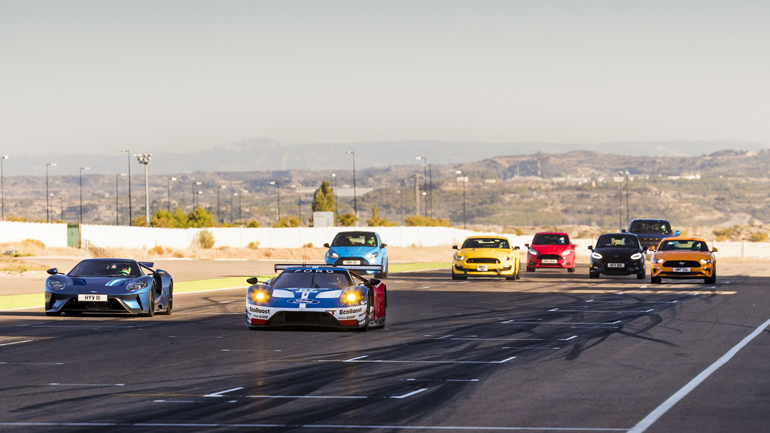 Τα Ford F-150 Raptor και Fiesta ST απόδοσης 450 και 182 ίππων, το ολοκαίνουργο Fiesta ST των 200 ίππων, το Focus RS με τους 350 ίππους, η νέα Mustang GT των 450 ίππων, η Mustang GT350R των 526 ίππων, το GT παραγωγής με τους 655 ίππους και το αγωνιστικό GT σε μία μεταξύ τους χρονομέτρηση, σε ένα και μόνο γύρο, στο circuit μήκους 5,345 χιλιομέτρων.