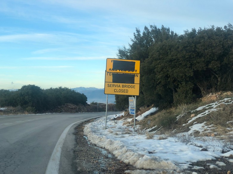 Μετά από μερικά χιλιόμετρα οι οδηγοί συναντούν μια άλλη πινακίδα που ενημερώνει ότι η γέφυρα στα Σέρβια είναι κλειστή. Άρα δεν υπάρχει πέρασμα. Κάποιοι κάνουν επιτόπου στροφή και επιστρέφουν προς τη Λάρισα (περίπου 90 χιλιόμετρα). Κάποιοι άλλοι ρωτούν τους οδηγούς που κινούνται στην αντίθετη κατεύθυνση. Για να ενημερωθούν αν η γέφυρα είναι κλειστή η όχι. Και κάποιοι άλλοι επικοινωνούν με την τροχαία. Και όλα αυτά γιατί; Γιατί ο εργολάβος αφού τέλειωσε τη δουλειά και πήρε την επιταγή με τα χρήματα δεν έκανε τον κόπο να «ενημερώσει» τις πινακίδες, δηλαδή τους δεκάδες χιλιάδες οδηγούς που ακολουθούν αυτή τη διαδρομή.