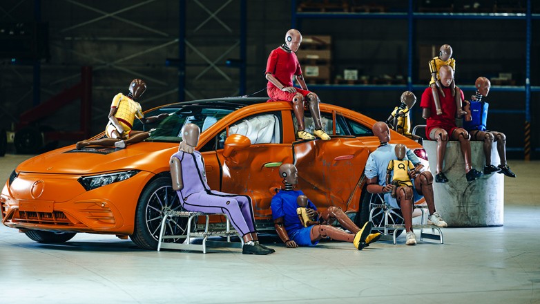 H Mercedes ξεκίνησε τη χρήση του θηλυκού ανδρείκελου πολύ πριν αυτό απαιτηθεί επίσημα από το νόμο. Το ανδρείκελο αυτό αναπαράγει τη γυναικεία ανθρωπομετρία, με το ανάλογο στήθος και οστά της λεκάνης. Έχει ύψος περίπου 1,5 μέτρο, ζυγίζει 49 κιλά ενώ διαθέτει αισθητήρες σε διάφορα σημεία του σώματος, φτάνοντας έως και τα 150 σημεία μέτρησης. Η Mercedes-Benz εργάζεται συστηματικά στα λεγόμενα «Μοντέλα Ανθρώπινου Σώματος» (Human Body Models (HBMs)), τα οποία είναι σχεδιασμένα για να αντιπροσωπεύουν την ανθρώπινη ανατομία – οστά, μυς και όργανα – με ακόμα μεγαλύτερη λεπτομέρεια.